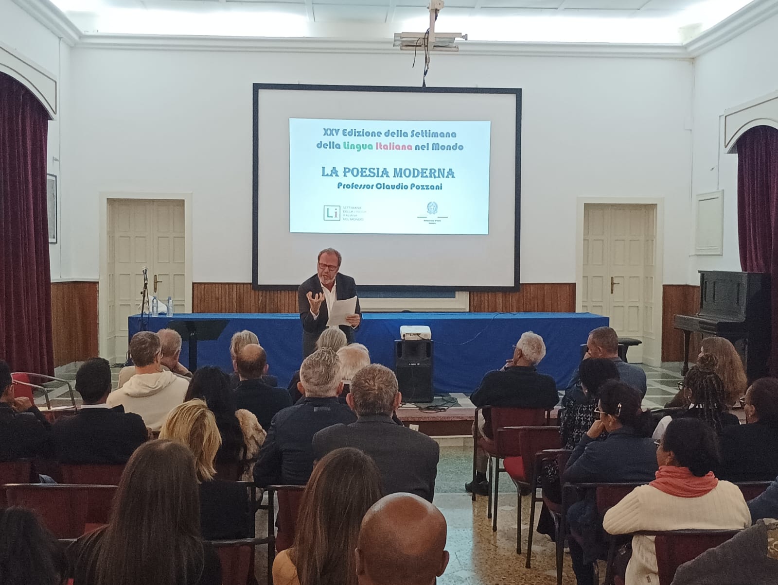 Ieri 16 ottobre 2025, si è svolta presso l’edificio demaniale “Casa degli Italiani” la conferenza “La Poesia Moderna” tenuta dal Professore Claudio Pozzani, poeta italiano contemporaneo, nell’ambito della XXV edizione della Settimana della Lingua Italiana nel Mondo dal tema “Italofonia: lingua oltre i confini”.
